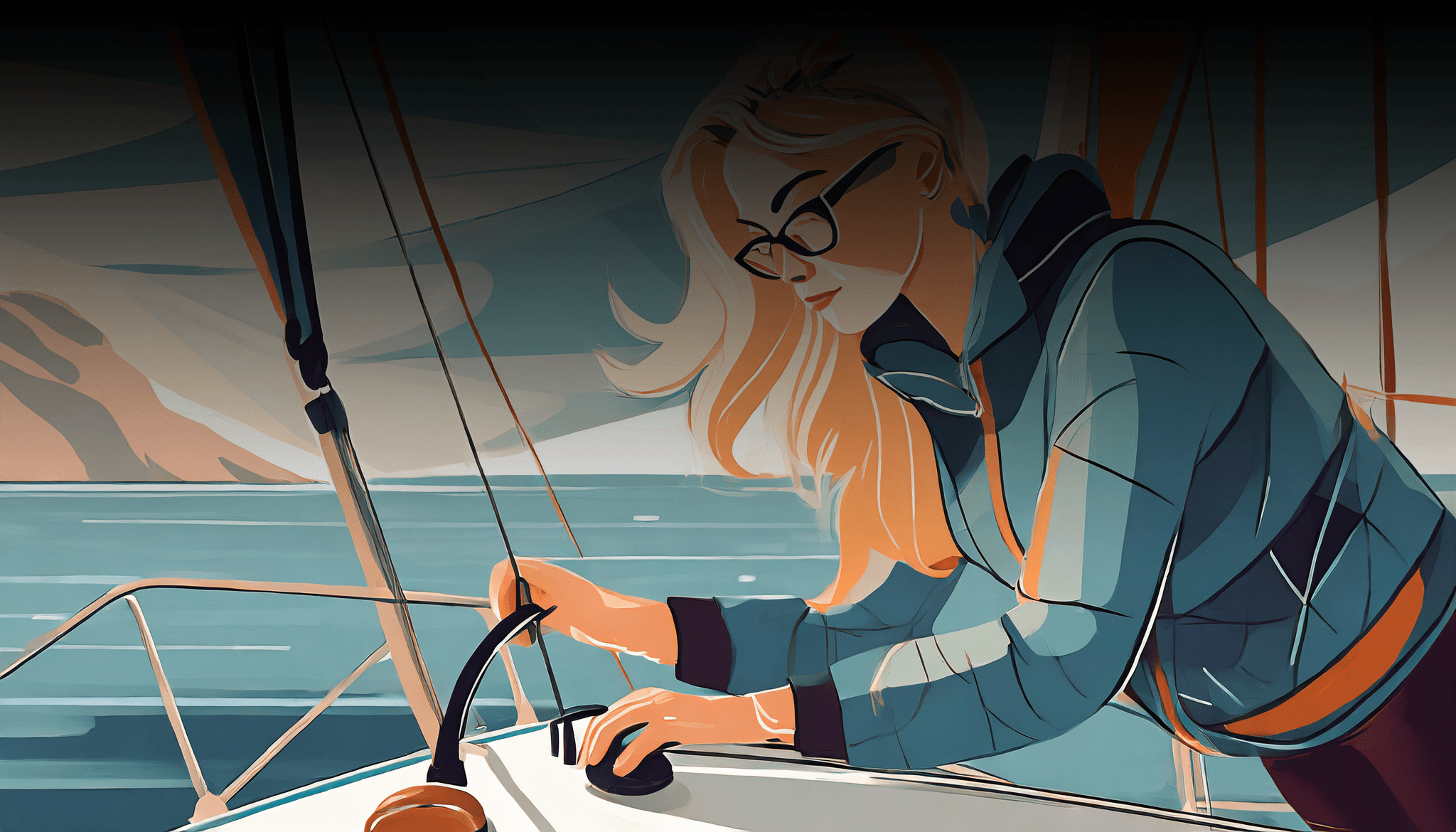 The sailboat's standing and running rigging